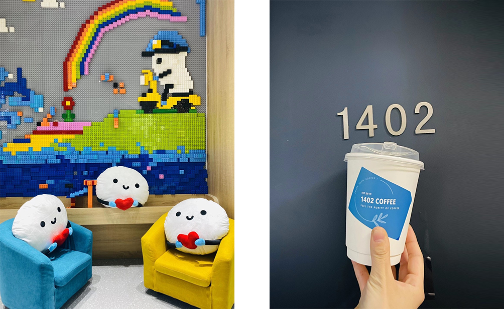 運(yùn)用“超級(jí)模特”鞏固品牌形象,我們做了一面樂(lè)高墻設(shè)計(jì),樂(lè)高墻的內(nèi)容就是一個(gè)馬賽克紋理的貝殼卡通人,足以讓這個(gè)空間變得生動(dòng)有趣。