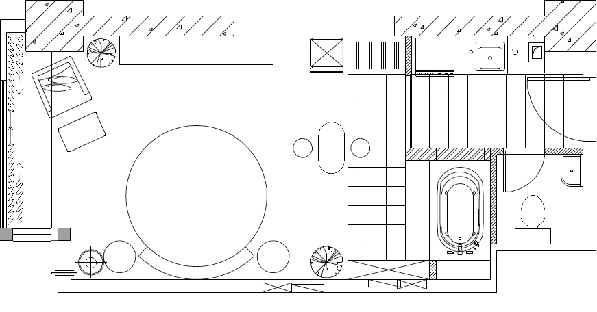 〇 第二版的設(shè)計,以常規(guī)雙人床代替了特色圓床,并增加了紗簾,給人以若隱若現(xiàn)而又浪漫的感受。